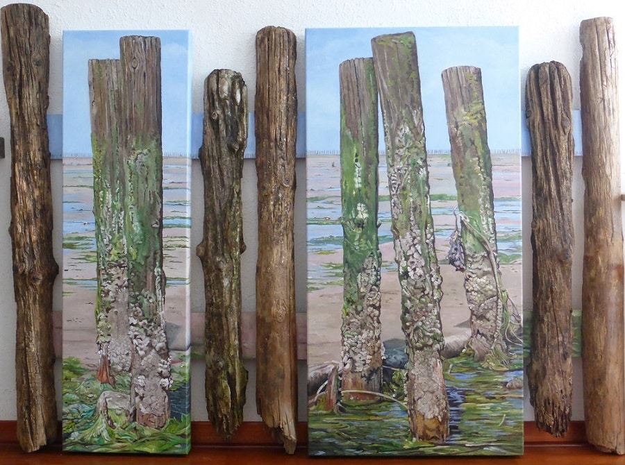 Olieverf op linnen + echte palen